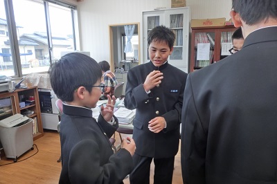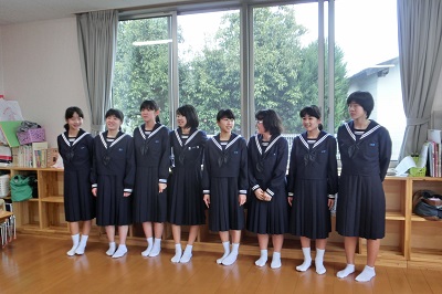 西小学校を卒業し、今日から新中学生になった、子ども達が、制服姿を見せに来てくれました。
