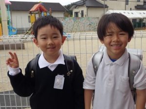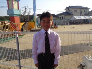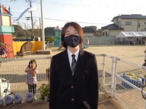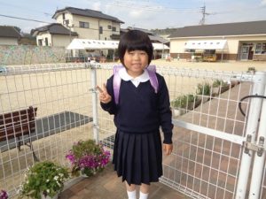 真新しいランドセルを背負って、制服姿の1年生が挨拶に来てくれました。