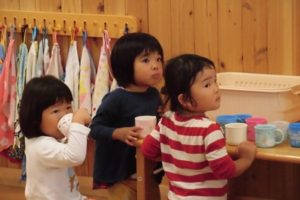 その後、保育園内の見学では、たしまっ子タイムが行われていたので、子ども達がやっている