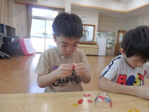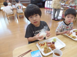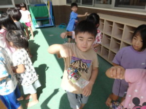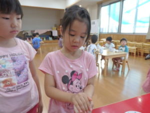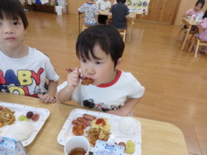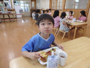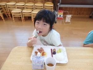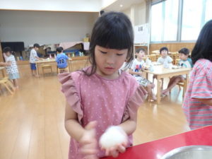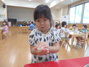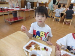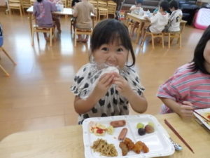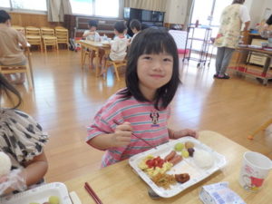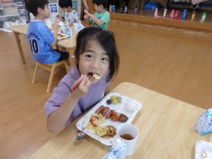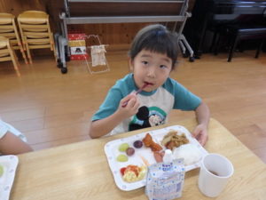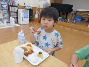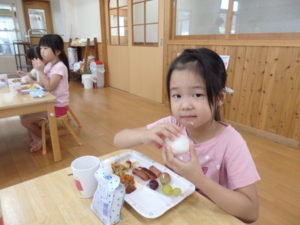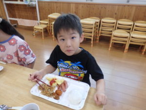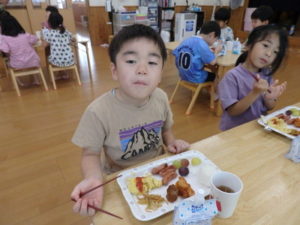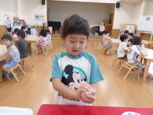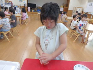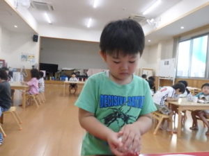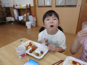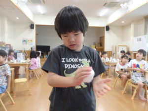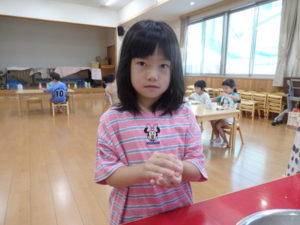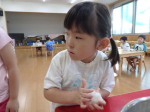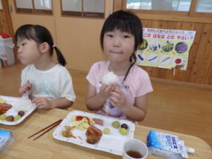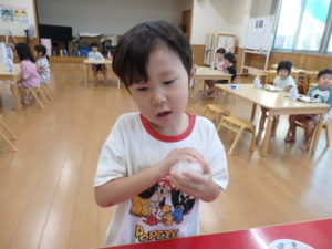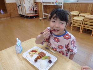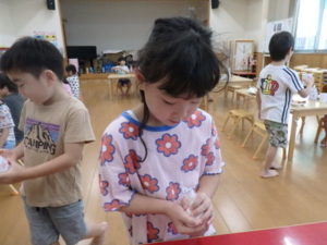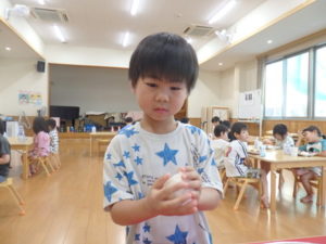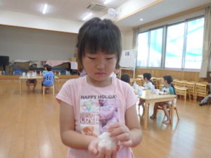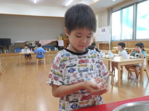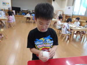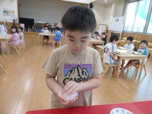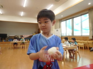 おにぎりを作るのが初めての子が多く、「あつい、あつい❣」と言う子ども達もいましたが、上手に握ることが出来ていましたよ😀