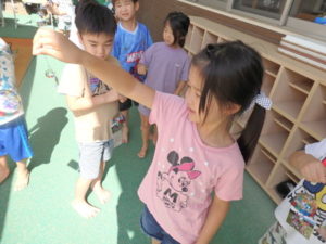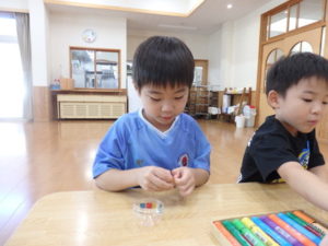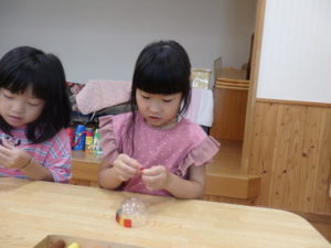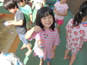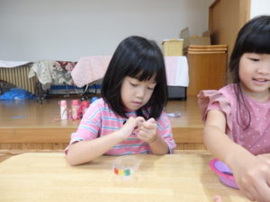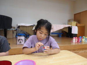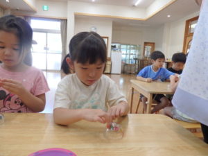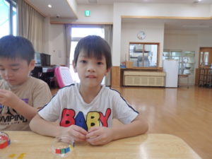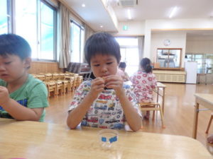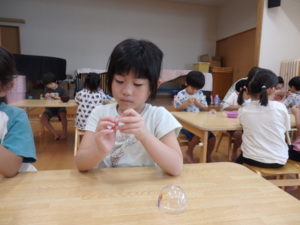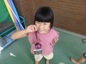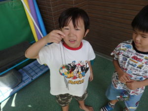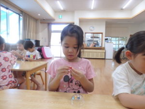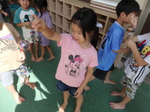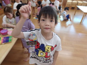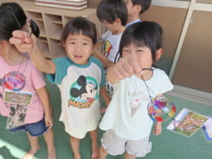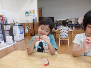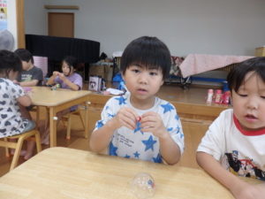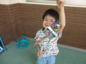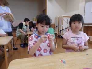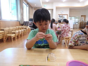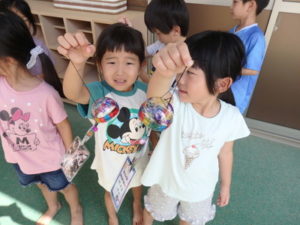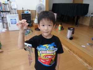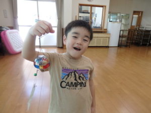テープをはがすのに苦戦する子もいましたが、自分らしいオリジナルの風鈴🎐ができて、子ども達も大喜びでした。