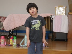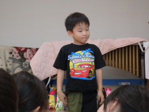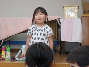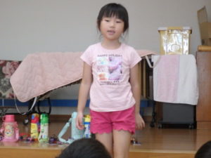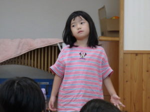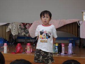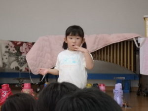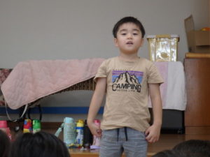 それぞれ「どこで、何をしたのがどうだったのか」元気よく大きな声で発表してくれました。
