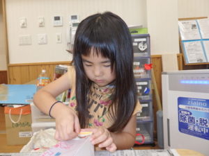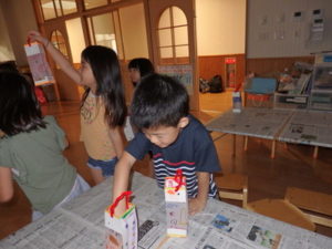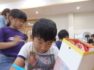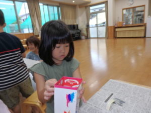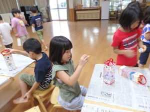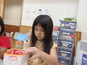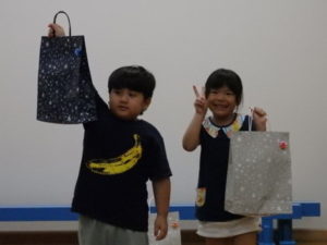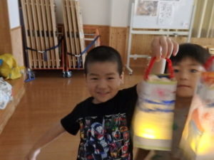 シールを貼ったり、マジックで絵を描いたりして自分だけの可愛いランタンが出来ました。