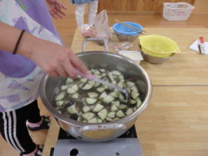 味噌汁が出来るのを待って朝食にしました。朝からおかわりする子もいて食欲も元気も旺盛でした。