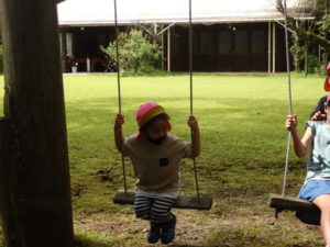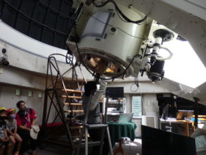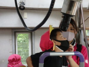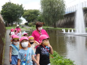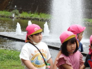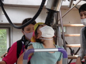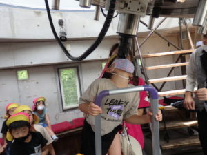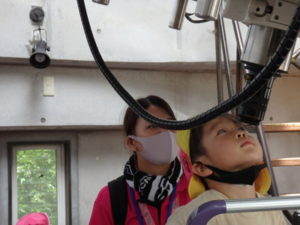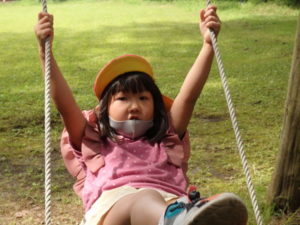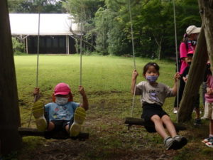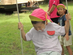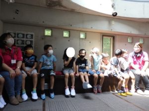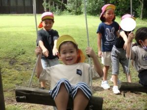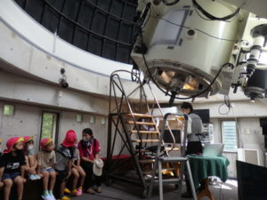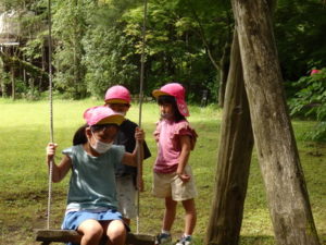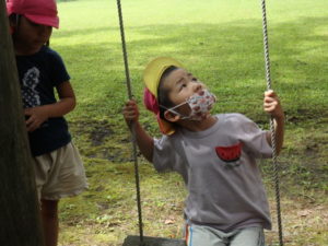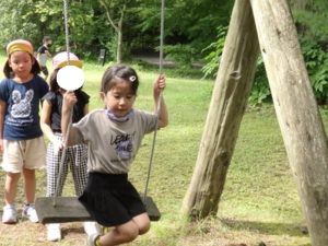 月廻り公園から、次はルナ天文台へ移動し、おおきな望遠鏡を覗かせてもらって、実物の「金星」を見たり、プラネタリウムでは、色んな星座の説明を受けました。宇宙の話しは興味津々で聞いていました。説明をして頂いた方にお礼を言って外に出ると、ルナ天文台の庭は外国のおとぎ話に出てくるような感じで、ブランコがあって順番に乗りました。保育園にブランコがないので、漕げない子どももいました。