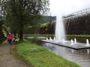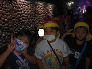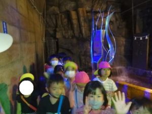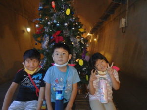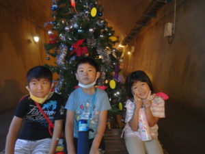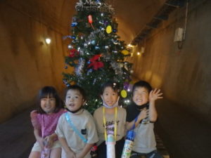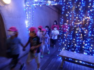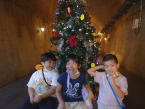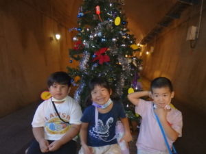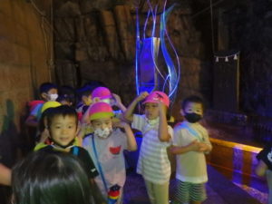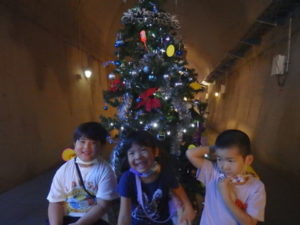 トンネル内はもっと涼しく薄暗く水が流れている所で落ちないよう歩き始めると、キラキラした飾りや、クリスマスツリーが見えテンションも高くなりました。進んでいくと、ウォーターパールがあり光の加減で止って見えたり、逆に登って見えたりして、みんな「わ~」っと不思議に思っているようでした。