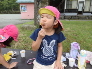 途中バスの中から見た空がきれいで、「先生見て~きれいな空だね~」と空を見ても今日のキャンプの嬉しさを表現したような言葉でした。