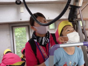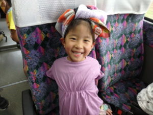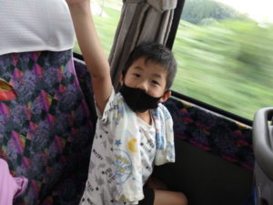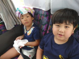 目的地は高森湧水トンネルで、バスが出発すると同時に会話の嵐!!日頃考えていること、お家での事、あそこは家だよ等おしゃべりが止まりません。