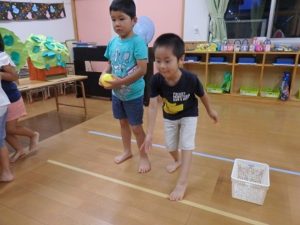 ボーリング、輪投げ、的当て等、みんなで楽しめました。