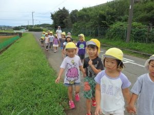 キャンプ2日目は西小まで散歩に行き、その後野菜の収穫を行い、味噌汁作りをしました。