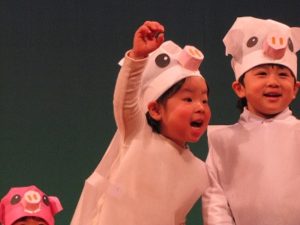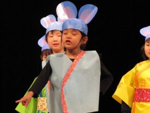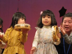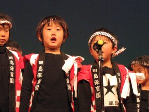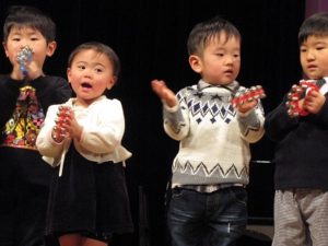 くま組の劇、遊戯、きりん組の、神楽、劇、と進み、コーラスの方と一緒に、ぱんだ組さんが合唱を披露しました。