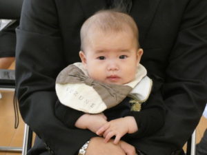 新入園児・途中入園児氏名点呼では、名前を呼ばれると、かわいく手をあげてくれたり、大きな声で返事する姿もありました。