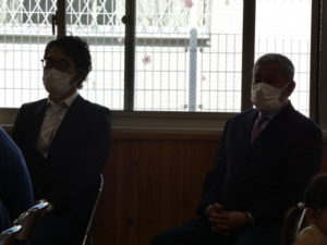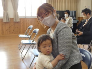 遊戯室に入室し入園・進級式が始まりましたが、いつもの入園進級式にはない静けさの中開式しました。