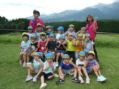 1日目のお泊り保育は、マイクロバスに乗って、阿蘇方面へのバス旅行です。