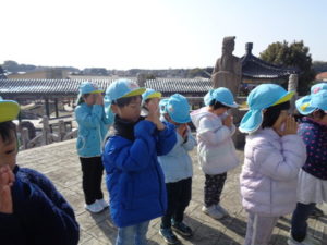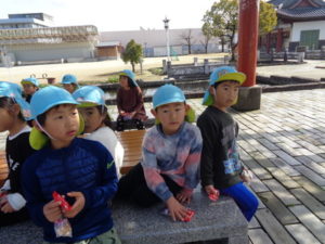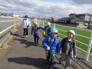 1時50分に孔子公園を出発して保育園への帰路となりました。帰り道もなぞなぞ、しりとり等しながら、しっかり歩き帰りも1時間5分
