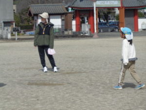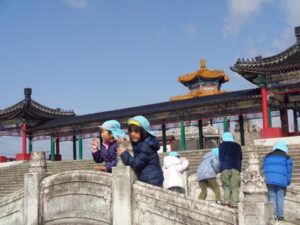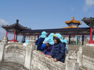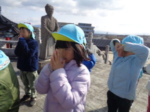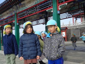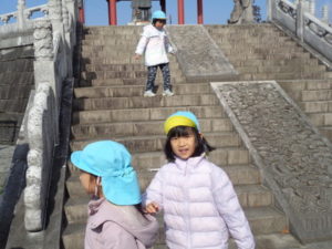 着いてからは、孔子像の所に行き、「小学生になれますように」と祈願し、広場に折りて、宝探しゲームをしました。