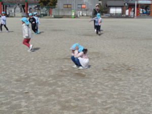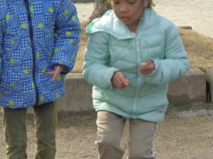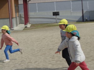 給食後は、広場でダンゴムシ鬼ごっこ、フリスビーを使ってのドッチボールをしてここでも走ったりしてしっかり体を動かしました。