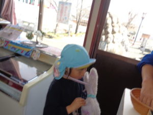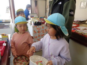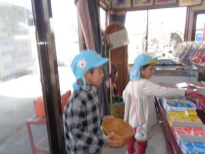 その後は、公園の遊具で遊び、分かれて、駄菓子屋さんへ行き、お買い物体験をしました。