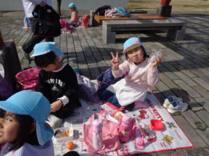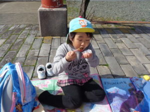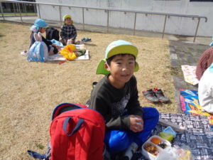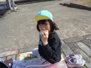そのうち、保育園から給食を運んでもらって、お弁当にしました。よく動いたので、おかわりしてたくさん食べていました。