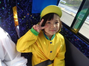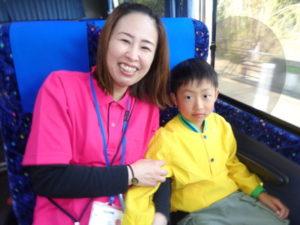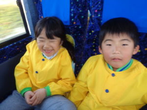 くまモンバスの中では、しりとりやマジカルバナナをして遊びながら、約1時間のバスのドライブを楽しみました。