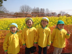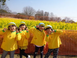 - 菜の花畑でハイポーズ