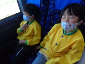 集合写真を撮って、帰りのバスの中はぐっすり眠る子どももいました。無事保育園に帰ることが出来て、