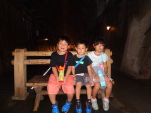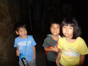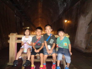 そのうち高森湧水トンネルに着きました。中に入る時はちょっと涼しい風が吹いてきて「わーっ、寒いみたい」