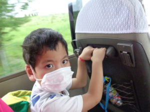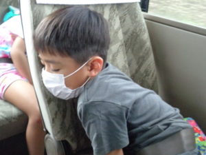 - バスの中では寝てしまう子どももいました