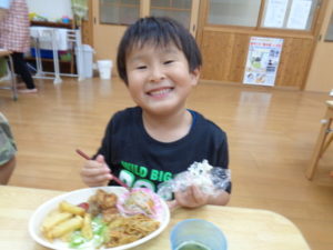 - おにぎりとから揚げおいしかったよ