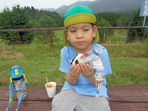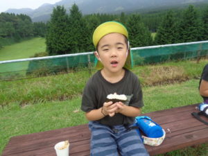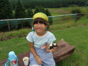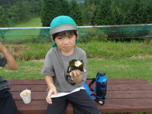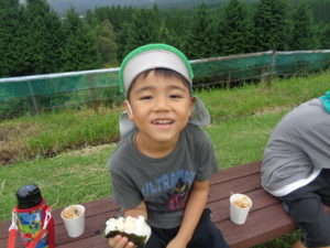 ここでは昼食のおにぎりと、から揚げを食べました。外で食べるのはとってもおいしいようで、