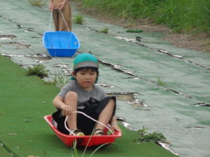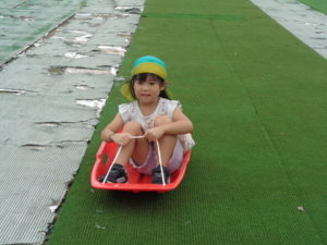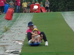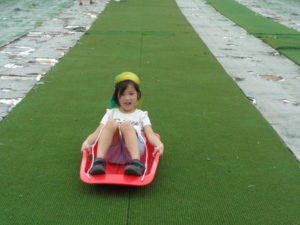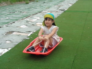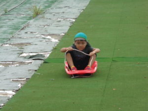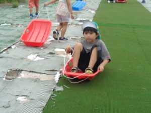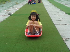 途中で止まったり、勢いがよすぎて転んだりと、ハプニングもありましたが、楽しんでいました。