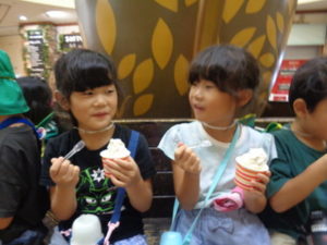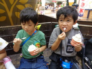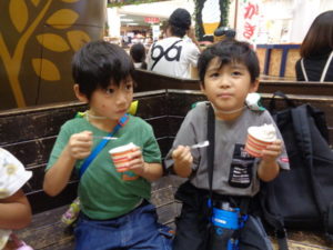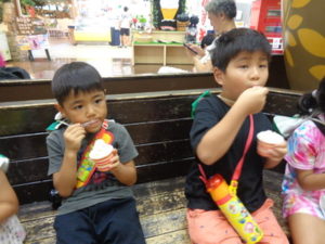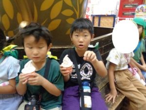 応援する姿もありました。その後、ソフトクリームを買ってもらい、みんな満足した様子でした。