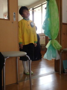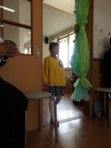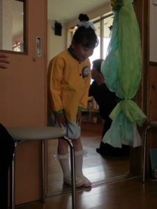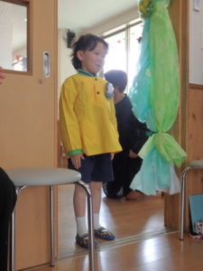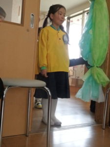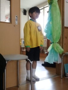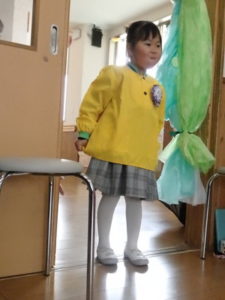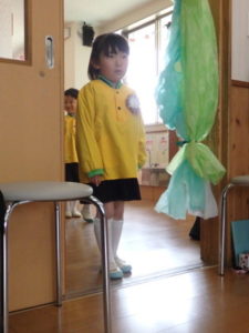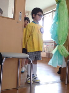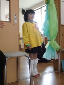 この日は朝からとてもいい天気で、卒園児は保護者と一緒にちょっぴりおめかしして、登園し部屋へ入りました。