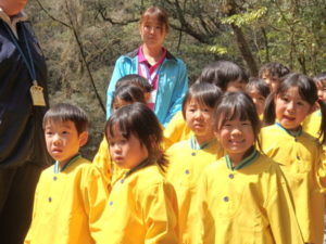 菊池渓谷山開き式へ、きりん組が合唱で参加しました。