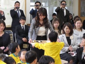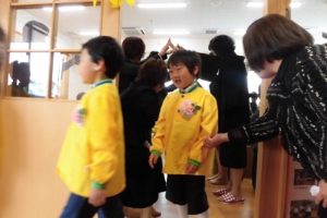 肌寒い日でしたが、きりん組さんは、保護者の皆さんと一緒に晴れやかに登園してきました。