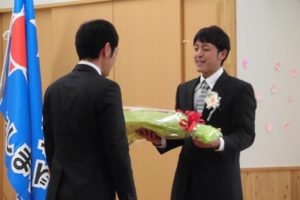 在園児のお祝いの言葉、歌をもらい、卒園児も嬉しそうな顔を見せてくれました。
