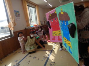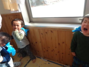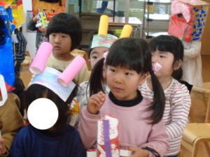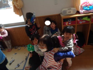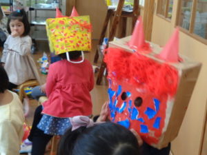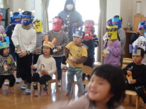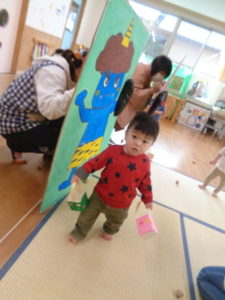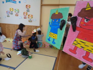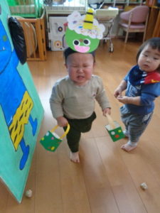 今年の鬼は、絵に描いた可愛い鬼でしたが、それでも泣いてしまう子もいました。
