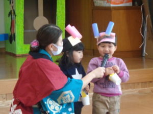 お福さんも登場して、みんなで「鬼は~外 ふくは~うち」の掛け声とともに