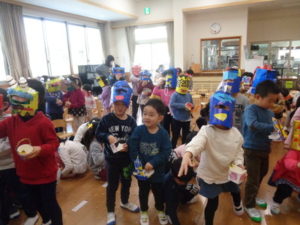 今日は、豆まきをしました。