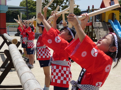 衣装を身に付けて鉢巻きをすると、ぐっと気合が入ったきりん組🦒さん。
