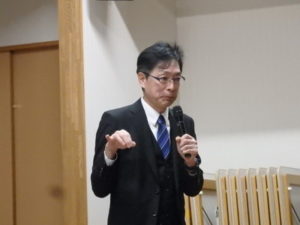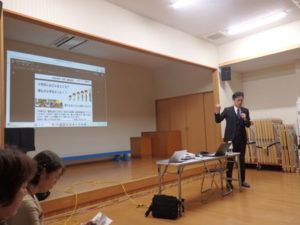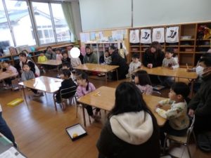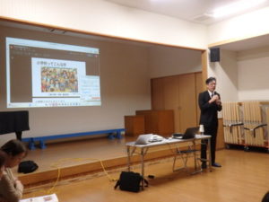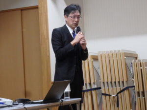 現七城小学校校長 藤田英明先生を講師にお招きして、「小学校ってこんな所」と題し、保護者向けの教育講演会を行いました。以前西小学校に7年間在籍されていた経緯もあり、保護者の中には教え子の方もおられ、講演会が始まり藤田先生が質問を投げかけられ教え子に当てられた時は、「はい、〇〇君」と小学校での授業のような雰囲気で、場を和ませておられました。小学校についてのお話、保育園で取り組んでおきたい事等を丁寧に説明されました。質疑応答でも活発に意見が出され、答えてもらいました。