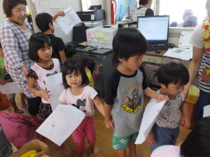 地図を片手に保育室や事務所を回りポイントでスタンプを押してもらいました。各部屋に入って「ありがとう」と声を掛けていた子ども達でした。
