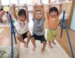 今日は、ひよこ組🐣・りす組🐿さん合同保育を行い、運動遊びを楽しみました。すべり台では、順番を待って、1人ずつ滑ることが出来、楽しそうな笑顔が見られました。鉄棒では、「やってみたい❣❣」と挑戦しにくるお友達がたくさんいました。