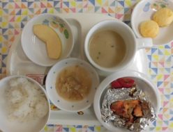 今日も昼間は暑くなりましたね。給食は、鮭のホイル焼きでした。鮭がおいしい時期になりましたね。おやつは、ポンデケージョ!白玉粉とチーズを混ぜて、丸めて、焼き上げました。塩気があり、もちもちした食感になりました。