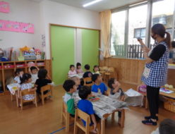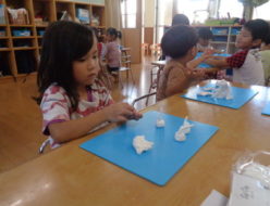 町の文化祭に向けて、みんなで「とんぼ」を作りました。好きな色のペンを使って色を付けたり、毛糸をぐるぐる巻き付けたりとっても集中して取り組んでいました。毛糸を巻き付けるのに苦戦している子どもも結構いましたが、かわいいとんぼを作る事が出来ました。