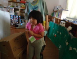 今日はたしまっこタイムでした。学童の部屋は、放デイ、学童協同で作ったおばけ屋敷の部屋で、おばけになる学童さんもやる気満々で怖がらせようと、色んな物を考えて作りました。