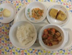 今日も雨でジメジメとした1日でしたね。今日の給食は、カリッとあげた鶏肉に甘酢ダレにからめました。お野菜苦手な子も頑張って食べてくれました。おやつは、ヨーグルトを使って白パンを作りました。ふわっと出来て人気でした。