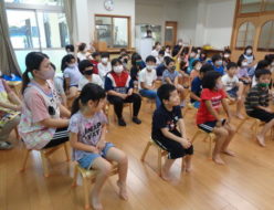 今日は、光徳寺の副住職隈部香佑さんに来園して頂き、講話をいただきました。ランチルームにきりん組、学童、放デイさんが集まり、まず、盂蘭盆会のお経をあげてもらい続いて講話をしてもらいました。