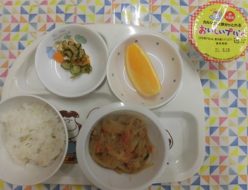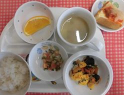 今日も雨がひどいですね。警報もなっていて怖いですね。給食は、カレーでした。カボチャやナスをいれて夏野菜カレーにしました。小学生の男の子が「おいしかった~」と声をかけてくれました。