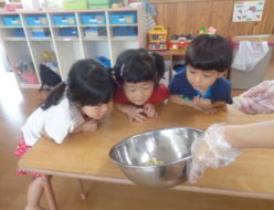 週末はお天気悪くなりそうですね。給食は、中華丼でした。どんぶり物はスルスル入りますよね。おやつは、おにぎりでした。わかめおにぎりで、おかわりもみんな並んで食べてくれました。